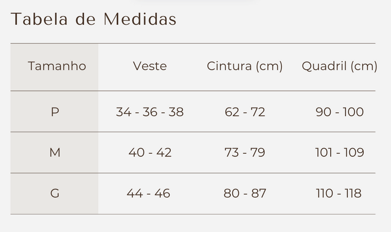 Recomendamos o uso de roupa íntima nude para evitar transparências.